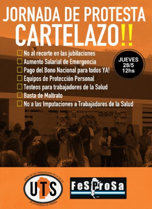 Está prevista una jornada de protesta con carteles. Los trabajadores piden por el NO al recorte en las jubilaciones, un aumento salarial de emergencia, y el NO a las imputaciones, entre otros puntos.