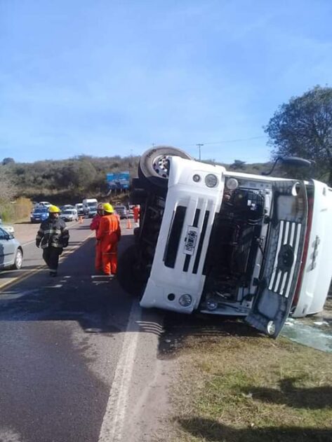 Ayer a las 13.30, un camión Volkswagen sufrió un vuelco en la ruta 5, en el Puente de las Vacas. Su conductor fue trasladado a un centro asistencial sin heridas de gravedad.