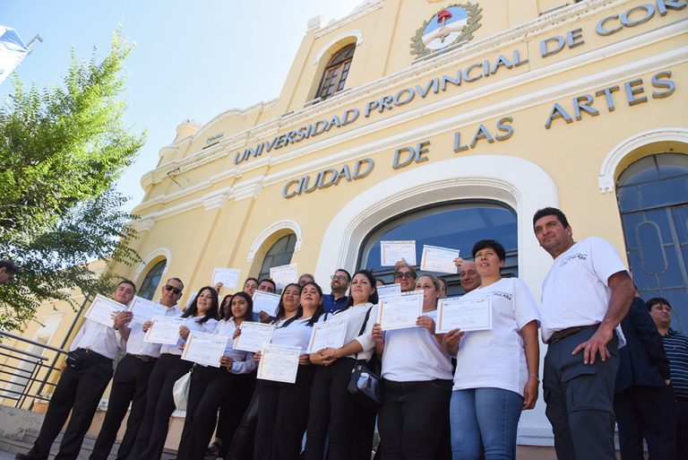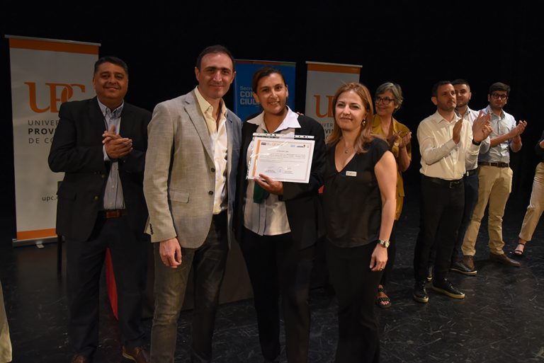 El acto de entrega estuvo presidido por el ministro de Justicia y Trabajo Julián López y la rectora de la UPC Julia Oliva Cúneo en el Auditorio Pte. Perón del Teatro Ciudad de las Artes.