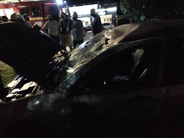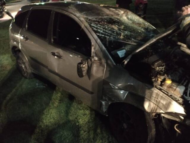 Por motivos que se tratan de establecer, el Ford Focus terminó dado vuelta.