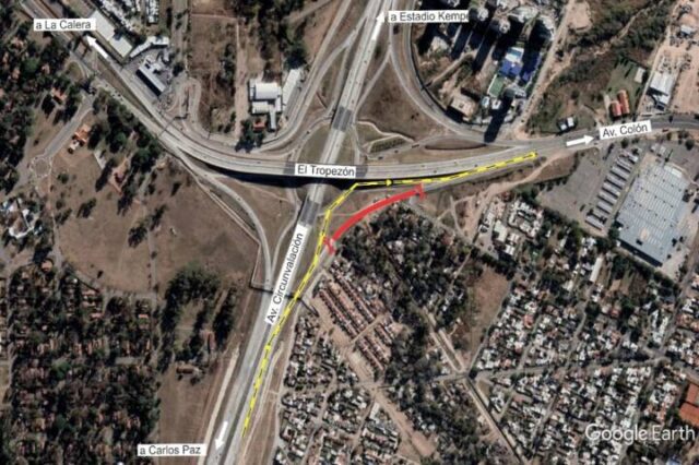 La empresa Caminos de las Sierras informa que, debido a los trabajos de la obra de desagüe que se lleva adelante como parte de la urbanización de barrio El Tropezón, se mantendrá cerrada al tránsito vehicular la rama de enlace del anillo interno de las avenidas Circunvalación con Colón en sentido hacia el centro de la ciudad de Córdoba.