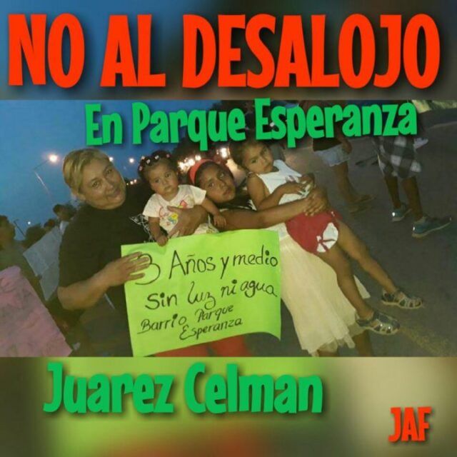 78 familias del Barrio Comunitario Parque Esperanza intentarán ser desalojadas el miércoles