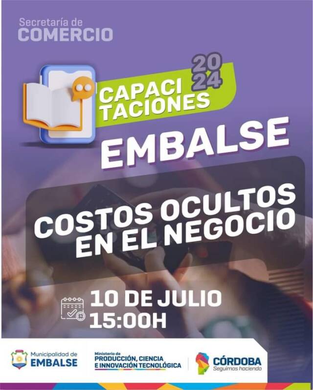 Por otro lado, el 10 de julio a las 15 horas, se realizará otra capacitación titulada «Costos ocultos del negocio», de manera presencial en el CIC de Embalse.