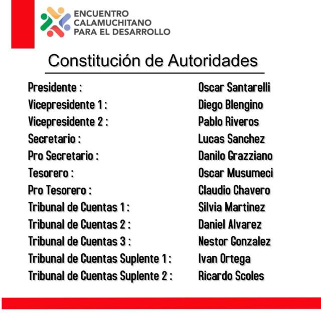 «Esta Noche, en #VillaGeneralBelgrano, Los Intendentes y Jef@s Comunales que integramos Encuentro Calamuchitano Para el Desarrollo , mantuvimos una nueva reunión en carácter de sesión extraordinaria, dónde el tema que nos convocó es la renovación de autoridades, para ocupar los cargos dentro de nuestro ente para el período 2022/2023″, informaron a través de las redes sociales.