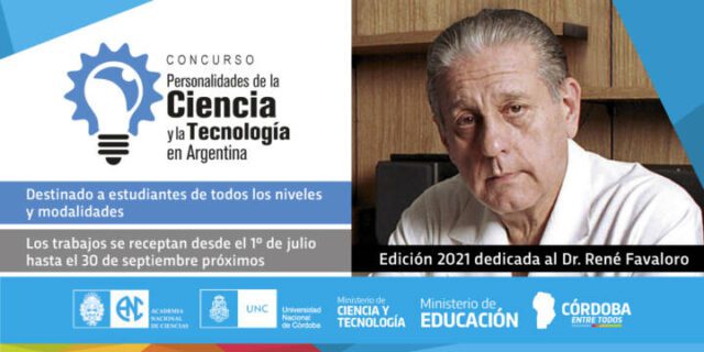 Los Ministerios de Educación y de Ciencia y Tecnología del Gobierno de la Provincia de Córdoba, junto a la Academia Nacional de Ciencias y la Universidad Nacional de Córdoba, invitan a participar del Concurso Nacional “Personalidades de la Ciencia y la Tecnología en Argentina”, edición 2021, dedicado a la vida y obra del Dr. René Gerónimo Favaloro.