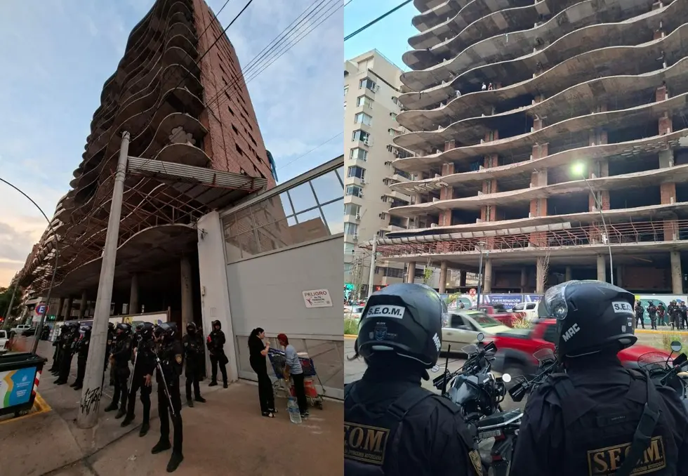 El despliegue comenzó durante la tarde del martes, luego de que se viralizaran imágenes de un menor jugando al borde del edificio, a unos ocho pisos de altura, lo que encendió las alarmas sobre el riesgo que representaba la permanencia de personas en el lugar.