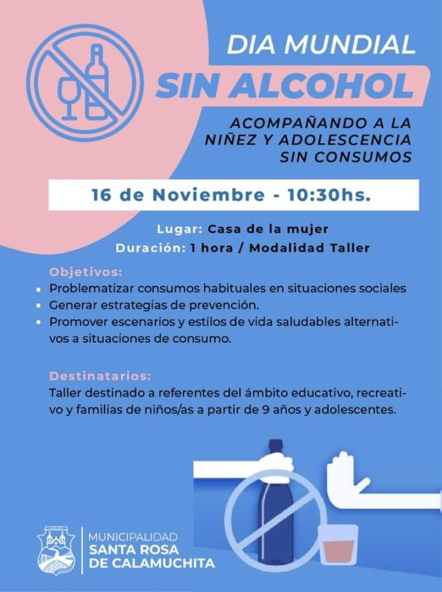 Se trata de un taller gratuito en el marco del Día Mundial sin alcohol el próximo 16 de noviembre.