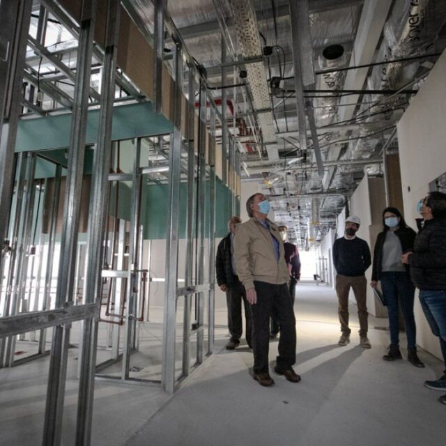 Acompañado por los ministros Cardozo y Sosa, el gobernador recorrió el edificio, que registra un 70% de avance. Su diseño contempla la atención de diagnósticos y tratamientos de alta complejidad.