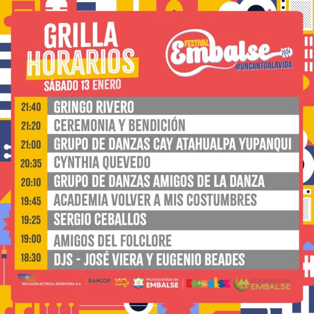 Si no queres perderte de la presentación de tus artistas preferidos, la recomendación que realizaron desde el equipo organizativo del Festival Embalse Un Canto a la Vida es que vayas temprano, te acomodes y te prepares para los espectáculos.