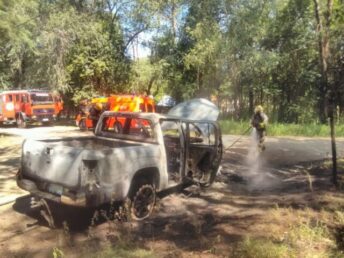 Minutos después salen tres móviles con casi una decena de efectivos para asistir en la situación. «Al llegar al lugar se constata que la camioneta se encuentra incendiada en su totalidad y se procedió a su extinción previo enfriamiento de la misma», describieron.