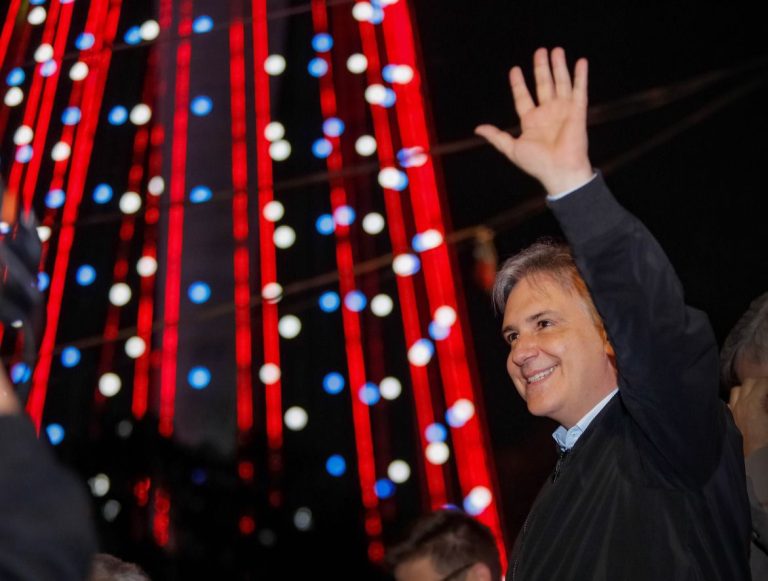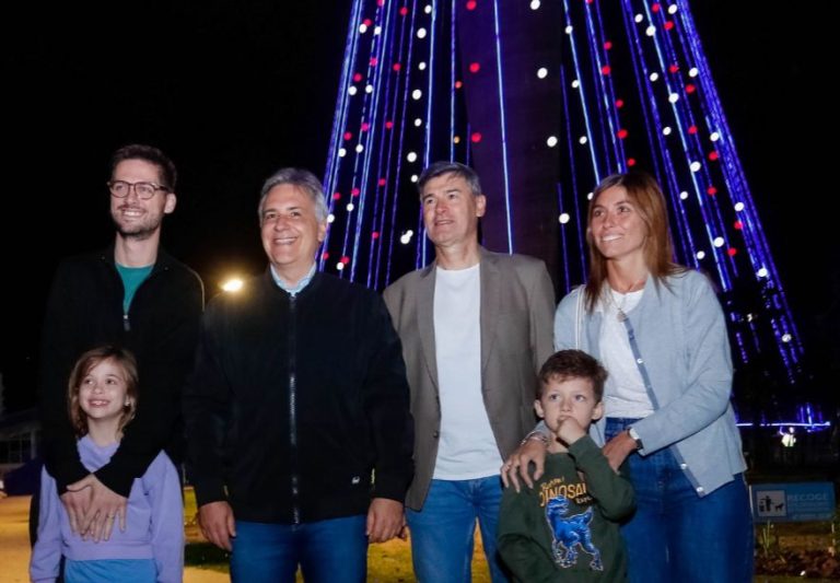 El gobernador Martín Llaryora y el intendente Daniel Passerini participaron este sábado del encendido de las luces del Árbol de Navidad emplazado en el Faro del Bicentenario, el más grande de Argentina.