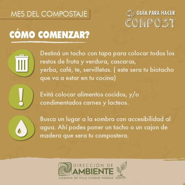 La localidad de Villa Ciudad Parque invita a los vecinos a sumarse al concurso de compostaje enviando una foto mostrando su compost domiciliario.