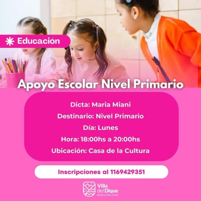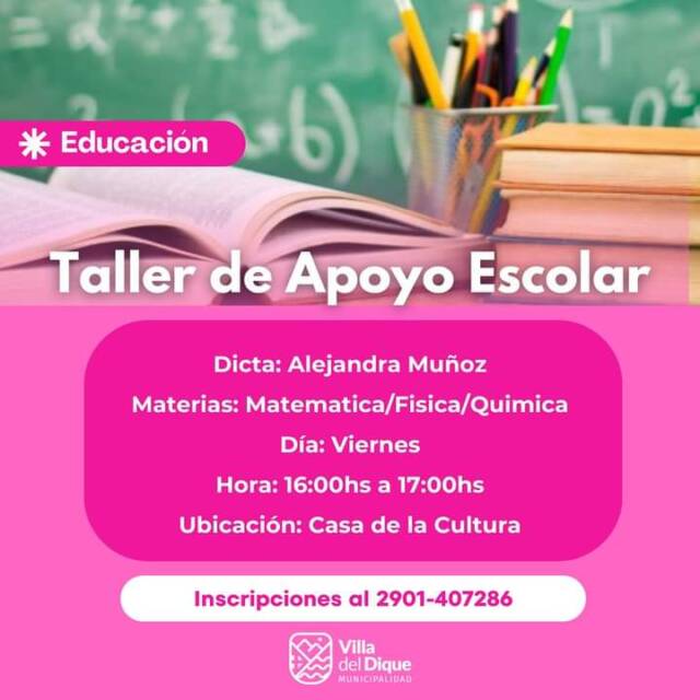 Siguen abiertas las inscripciones para los talleres educativos en la localidad de Villa del Dique.