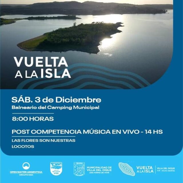El sábado 3 de diciembre se llevará a cabo la competencia de natación en aguas abiertas «Vuelta a la Isla», en Villa del Dique. El evento está organizado por la Open Water Argentina y la municipalidad de la localidad.