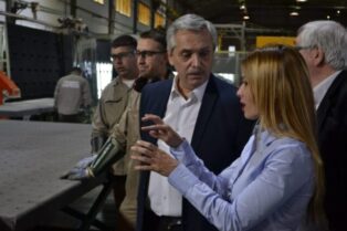 Luego del almuerzo con empresarios en el Hotel Quorum, Alberto Fernández visitó la planta de Favicur junto a Eduardo Fernández, Gabriela Estévez y Mirta Iriondo, quienes lo acompañaron durante toda la jornada. En esa ocasión, Pablo Chacón y Sergio Massa se sumaron al recorrido.