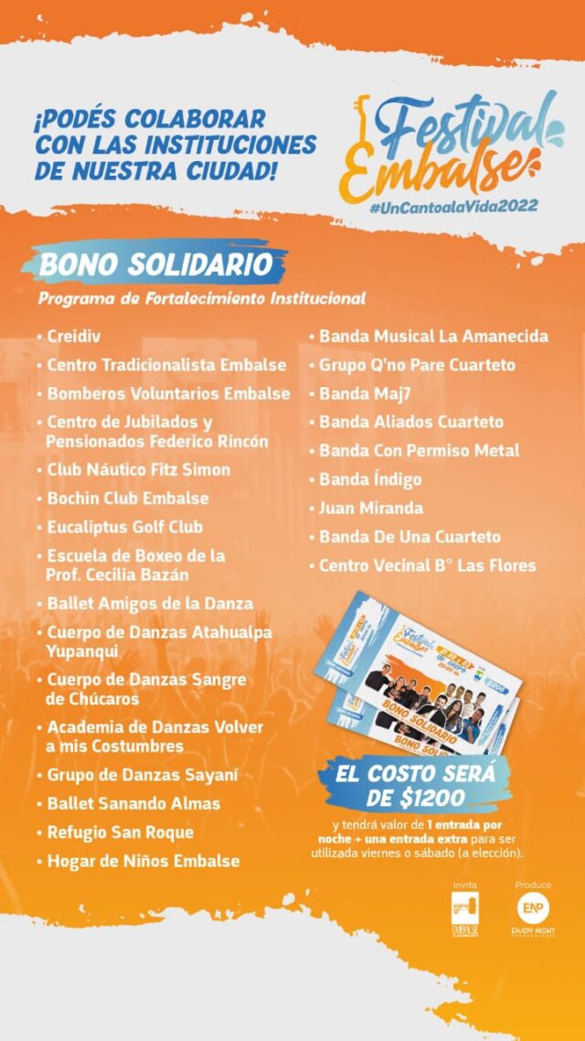 Ya están a la venta los bonos solidarios para el Festival Embalse Un Canto a la Vida 2022